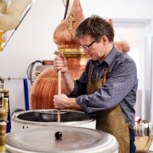 Det er Destillatør og Brygger Martin Iversen selv, som viser rundt og fortæller.